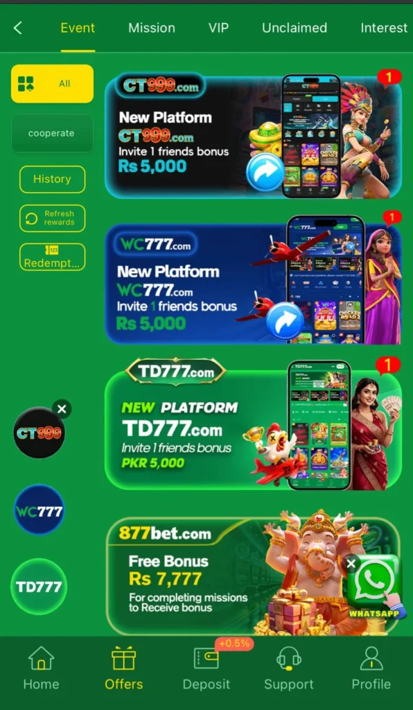 877Bet Game is an online gaming platform that offers various casino style games that are in trend. The gaming app is designed for players who have been looking for a gaming platform that gives them an opportunity to earn real money. The app offers games like slots, Fishing games, Classic table games, Live poker, and much more. With its smooth and easy-to-use 877Bet Game has gained popularity among casino lovers quickly. The application can be downloaded for free. This app can be downloaded in both Android and IOS devices. The app gives realistic casino experience by offering real-time betting. The app has safe and secure transaction and payment methods. It is linked with applications like JazzCash and Easypaisa.