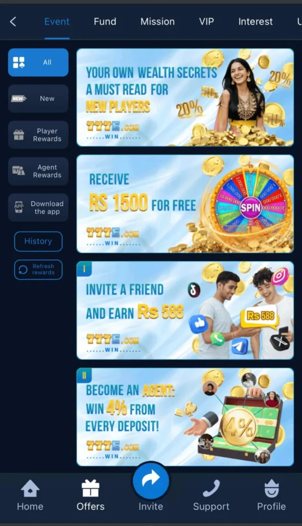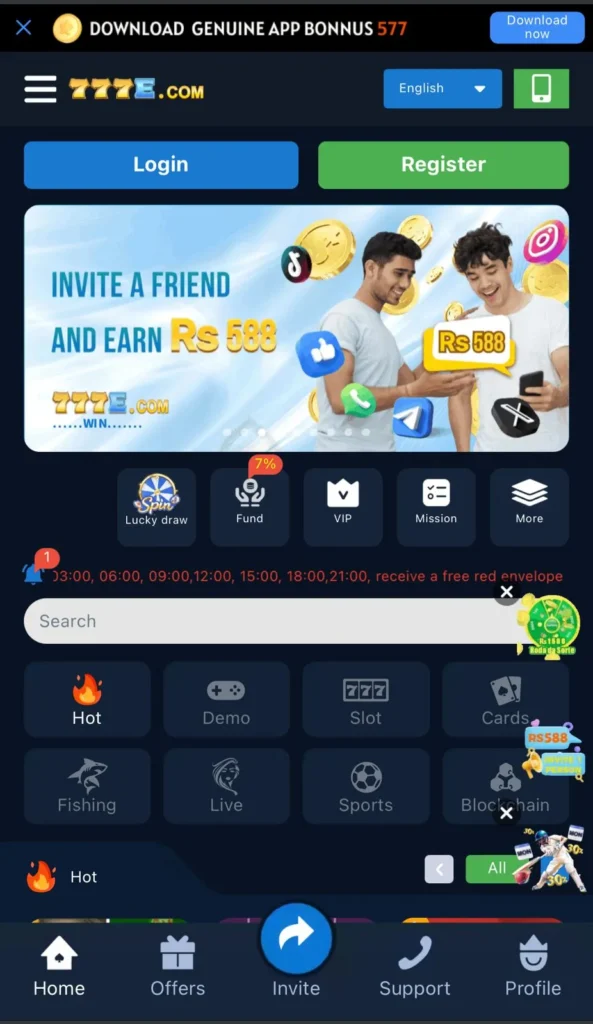 Invite friends to join 777E Game and earn referral rewards. Both the referrer and the new player can benefit from extra credits.
