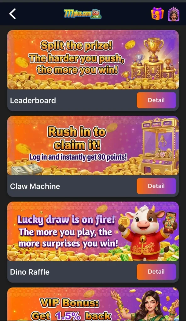 The 777Plus game is an online gaming platform that offers a wide variety of casino-style games and betting options through a mobile application and browser interface. The platform allows players to participate in slot games, card games, live casino tables, and other interactive games where rewards can be earned based on gameplay outcomes.