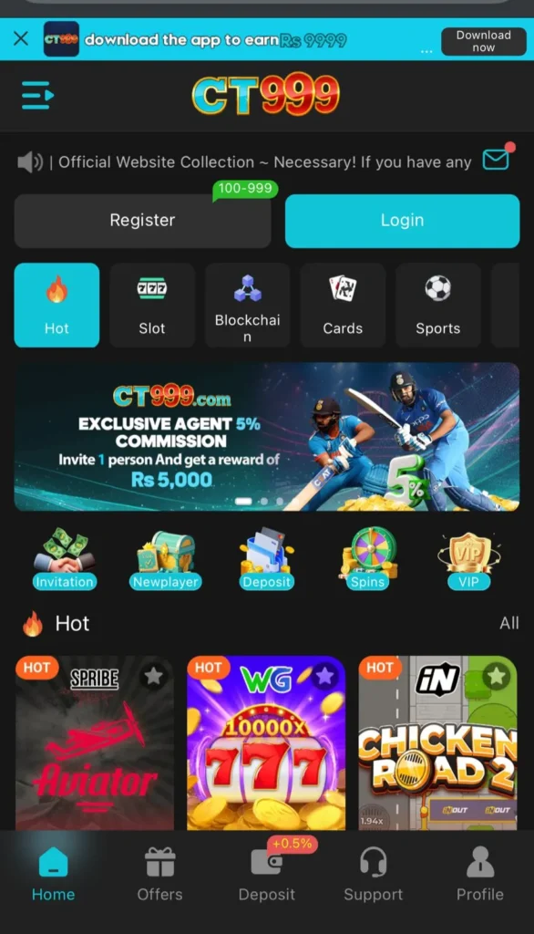 Ct999 is a modern online gaming platform where you can earn real money prizes. It also offers various games to play in one app. The games include color prediction, slots, lottery, and more. It is simply designed so that every beginner can easily understand the rules and play easily. Due to its simple design, everyone can easily get access to it and play the games and earn quickly. The Ct999 game app features are updating regularly, which gains the interest of users and provides entertainment. In addition, the players can play live casino or card games anytime, and by playing regularly, it increases the chances to win, and regular bonuses increase the chances to earn more money.