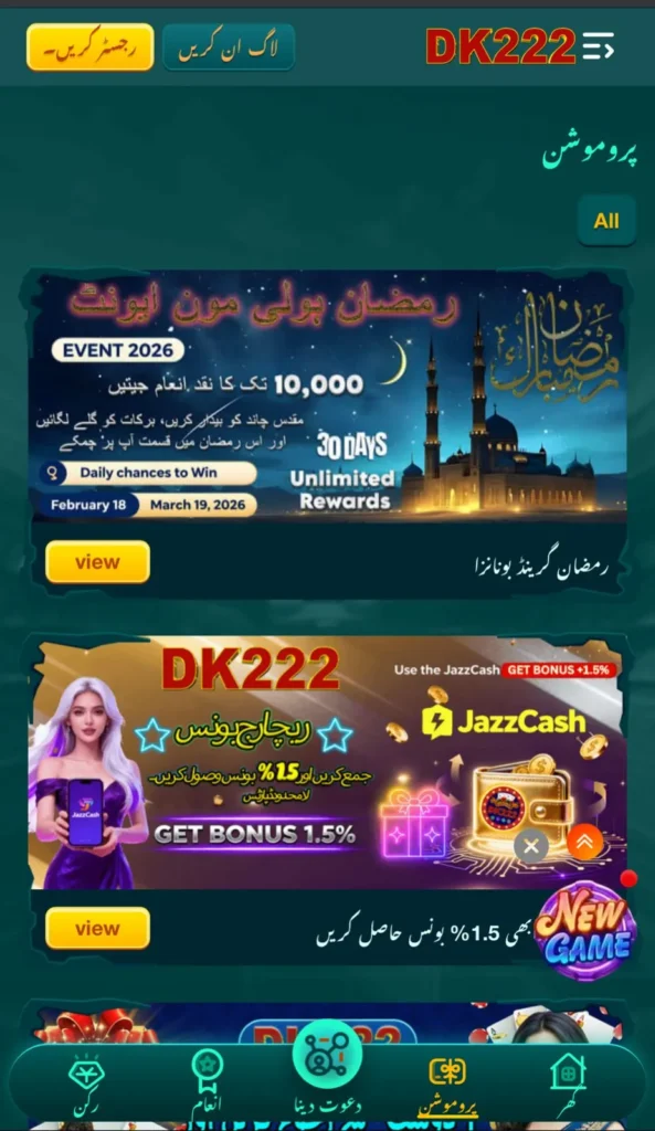 DK222 Game is trending in Pakistan because it combines easy‑to‑play mobile games with real earning opportunities, making it attractive to a wide range of users. Its support for popular local payment methods like JazzCash and EasyPaisa makes transactions smooth and convenient for Pakistani players. Frequent bonuses, rewards, and referral offers keep users engaged, while the variety of game categories and live dealer options make the platform entertaining and competitive. These features together have helped DK222 Game quickly gain popularity among mobile gamers in Pakistan.
