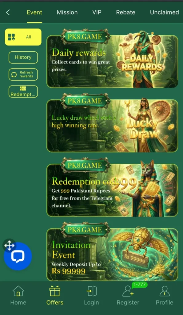 Local Payment Support: PK8 Game supports popular Pakistani payment channels, allowing users to transfer funds conveniently in their local currency.