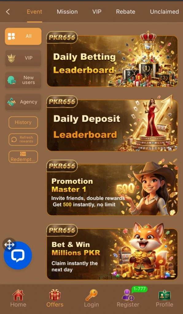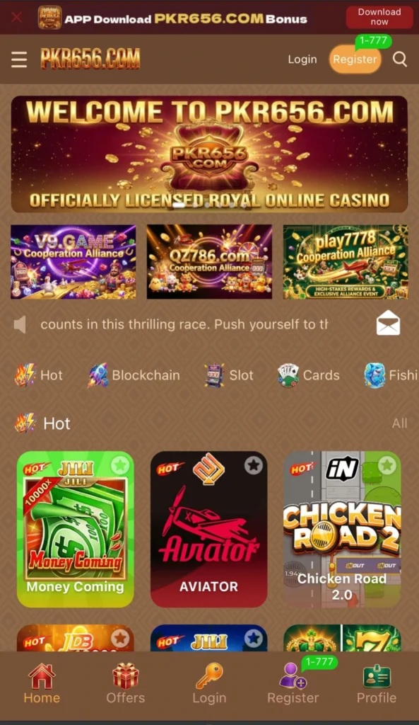PKR656 Game is an online mobile gaming platform that allows users to play a variety of casino-style and skill-based games while earning real money. It is mainly designed for Pakistani users and typically operates through an Android APK. The platform offers games like slots, Teen Patti, poker, lottery, and sports betting, where players can deposit small amounts and win rewards based on gameplay or luck.
