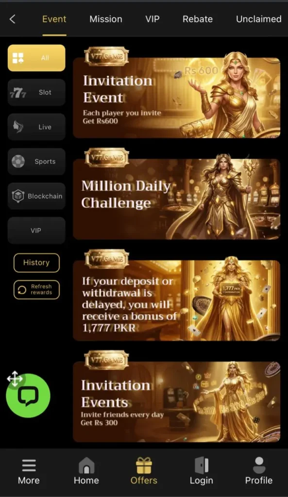 In the world of online gaming people are only attracted by games that allow them to make money. Keeping the interest of people in mind, we have brought you V77 Game app. This application has become very popular in Pakistan. Modern graphics, simple interface and colorful visuals of this app are appreciated by the gamers. The application has fast and secure payment methods. From slot machines to traditional card games, you can enjoy many games in the app. The application has something for everyone. With a small amount of practice, players can understand the game easily. V77 app is updated timely. Feedback of the players is always taken into consideration. This is the reason why many players like the app. It is free and lightweight game application that can be downloaded easily on any mobile. The app supports localized payment methods that make it more convenient for players. All you have to do is use your gaming skills to earn unlimited amounts of money.