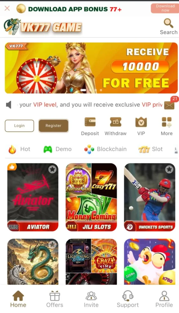 VK777 Game is an online casino and earning app. It allows players to win real money rewards.