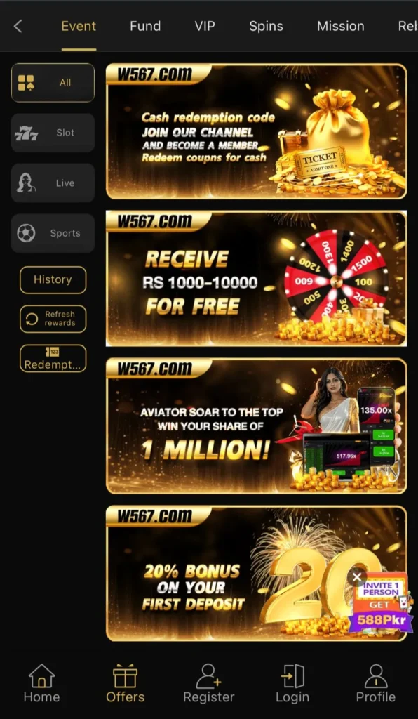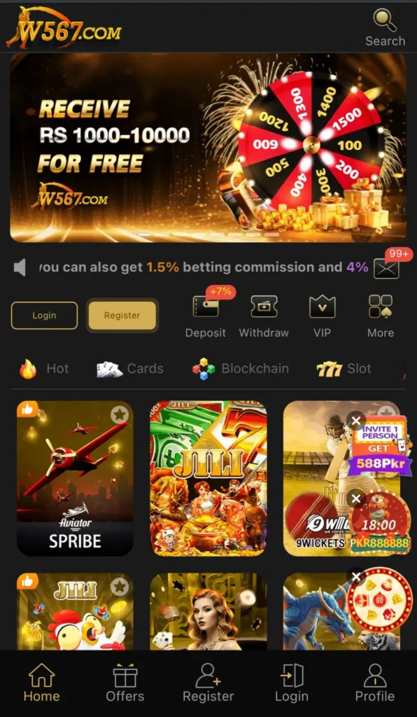 W567 is an online casino game app with a huge collection of games in it. This application has gained huge popularity in Pakistan for its features, such as money-making potential, because everyone is looking forward to earning real money online.